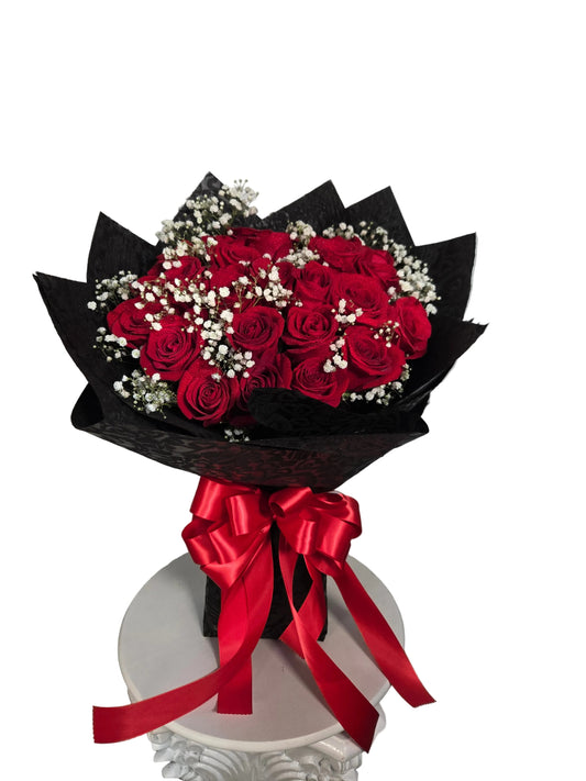 Red Roses Bouquet - Elegantly wrapped to Perfection gift for Wife, Girlfriend, Mom - Romantic Anniversary, Birthday, Graduation Gift